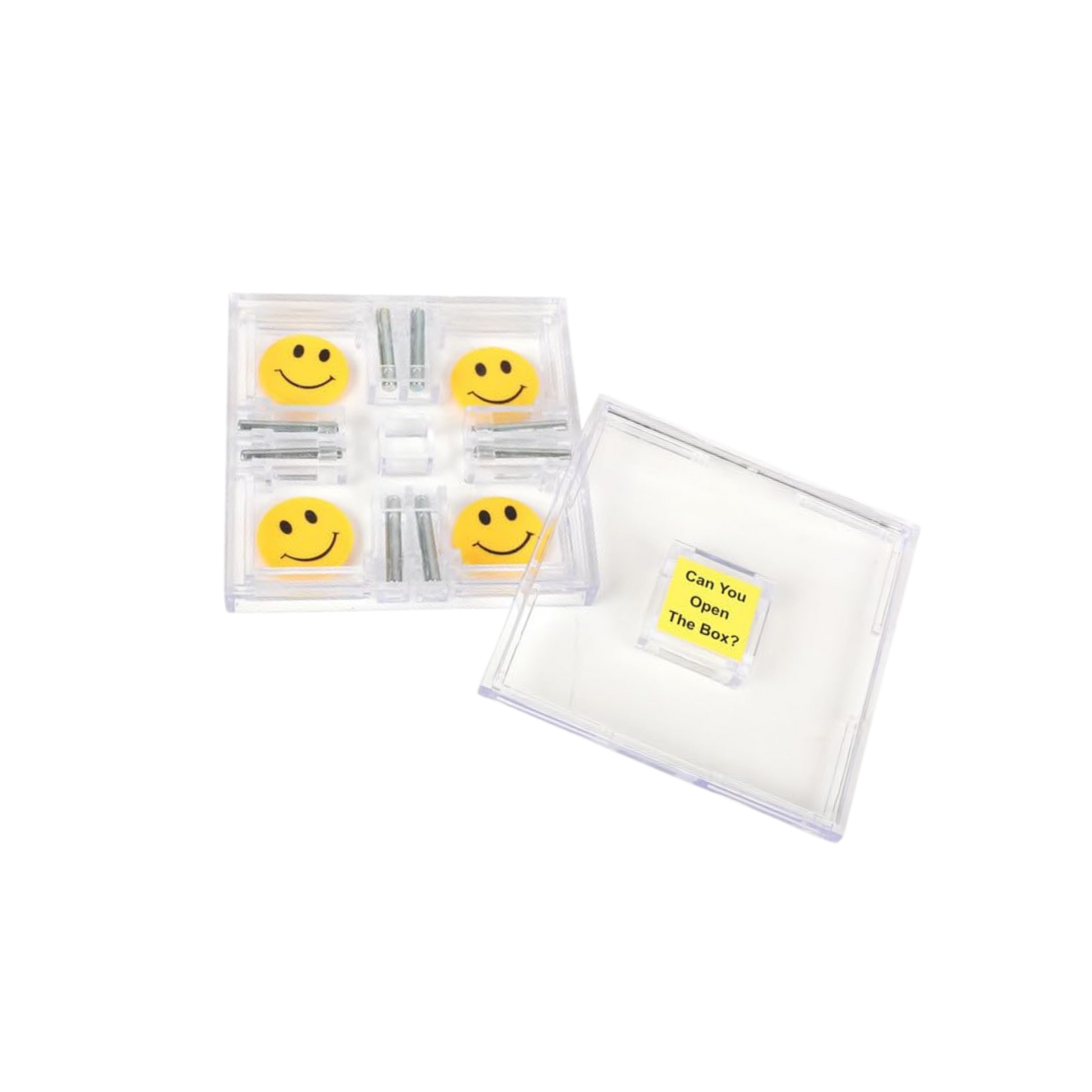 Experience hours of engaging, brain-boosting fun with the Brain Lock Mind Challenge Puzzle Box! Designed for curious minds aged 7 and above, this toy challenges problem-solving skills while providing endless entertainment. Crafted from durable, transparent plastic, the Brain Lock box features four bright, cheerful smiley faces and a clever slider mechanism that makes opening it a real puzzle. The central question is simple: "Can You Open The Box?" — but the path to success will exercise patience, logic, and dexterity!