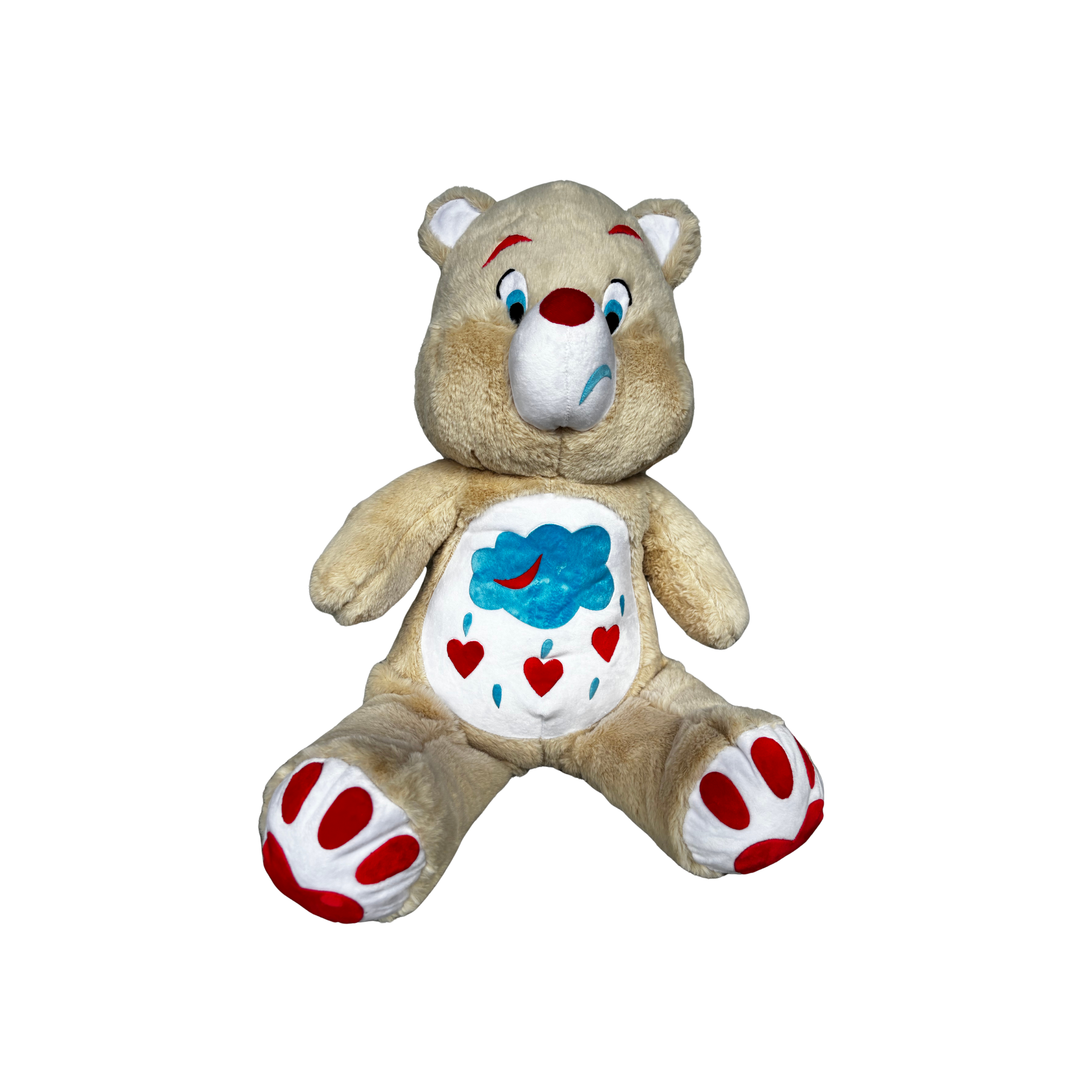 Spread joy and comfort with the HANGABLE CARE BEAR SOFT TOY! Standing at 68 cm tall, this charming bear features a plush beige body, soft round face, and a joyful design on its belly with clouds, hearts, and raindrops. The extra-plush Indonesian fibre filling makes it incredibly cuddly, while the built-in hanging loop adds endless display options—from nursery walls to bedposts. Red heart paw details and expressive embroidery create a lovable personality that makes this care bear perfect for snuggling, gifting, or comforting children and adults alike.