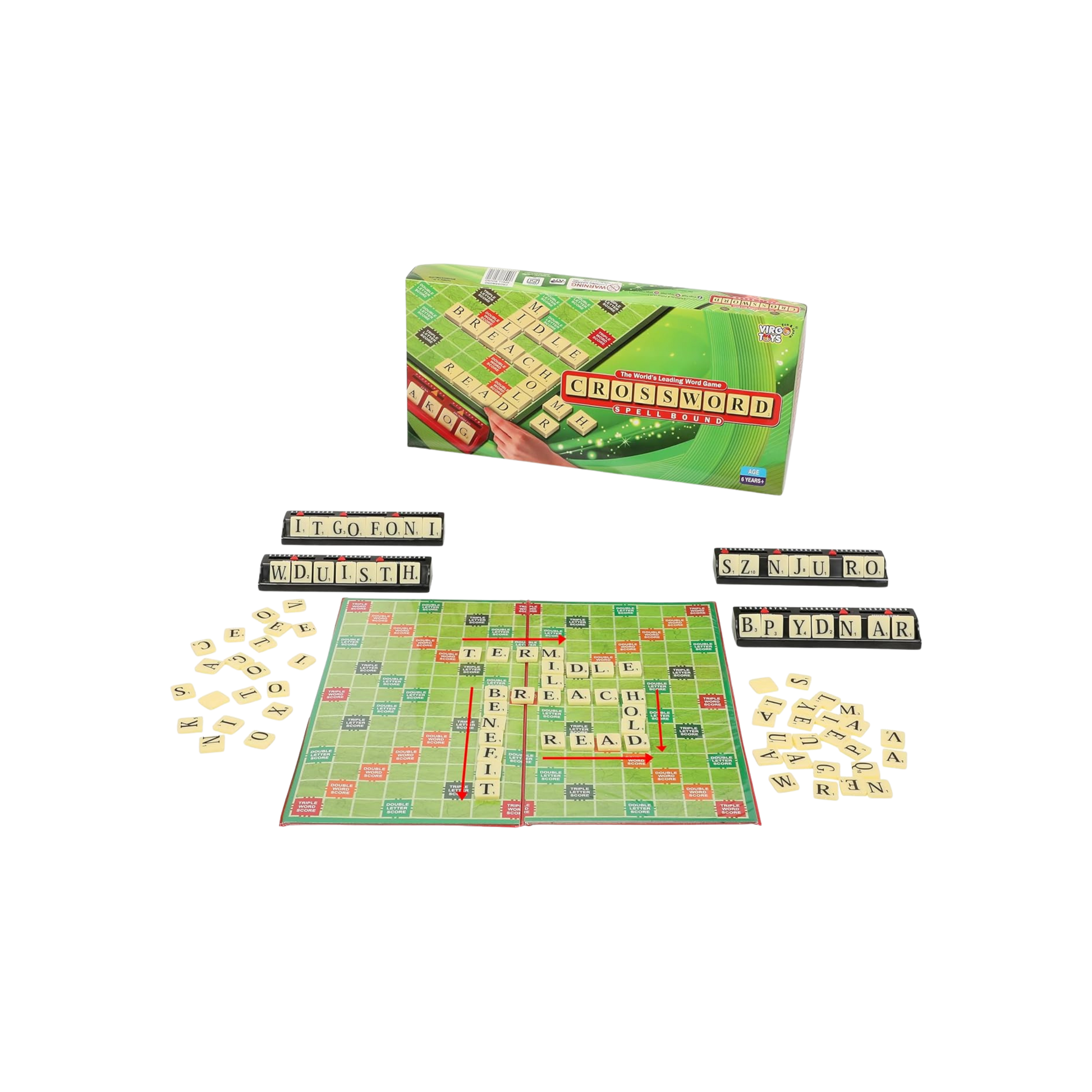 Discover the magic of words with CROSSWORD SPELLBOUND by Virgo Toys, recognized as the world's leading word game! This classic board game challenges players to create interlocking words on the colourful game board using letter tiles with strategic scoring values. With its premium squares for bonus points and comprehensive tile racks, this game transforms vocabulary building into an exciting competitive experience. Perfect for family game nights, educational play, or serious word enthusiasts, CROSSWORD SPELLBOUND offers endless entertainment while enhancing spelling skills, strategic thinking, and vocabulary expansion for players of all skill levels.