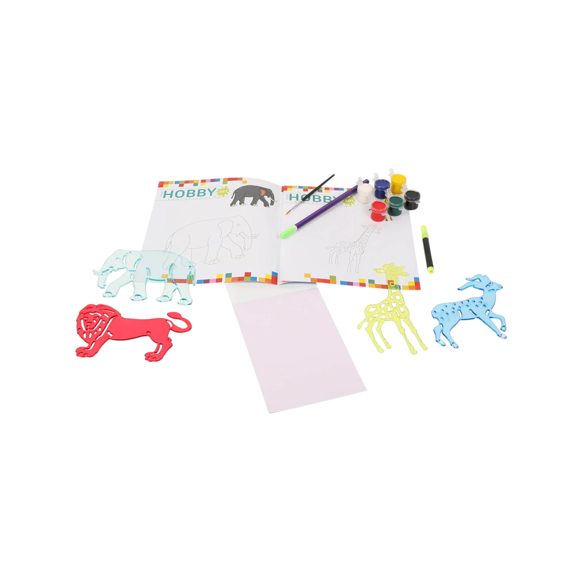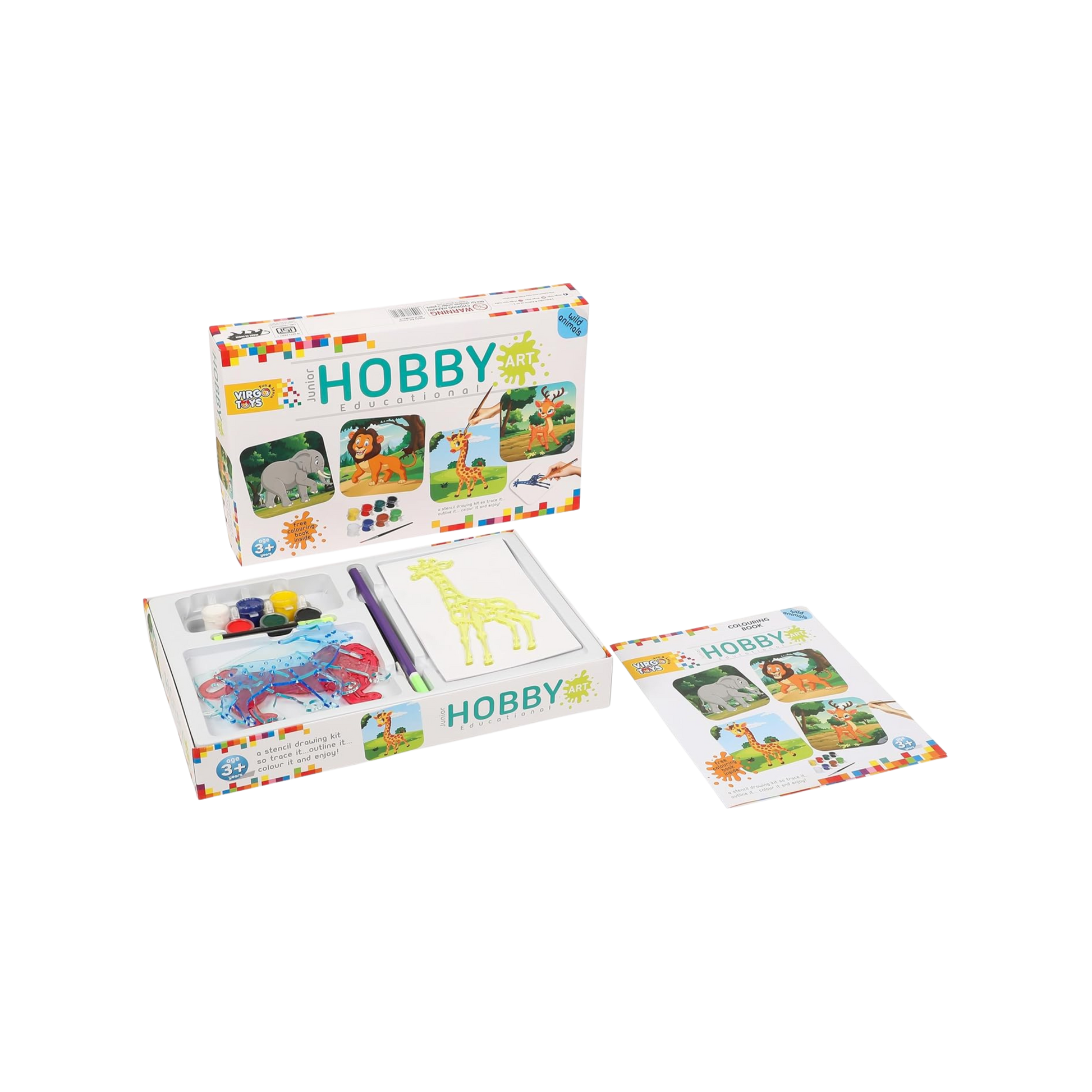 Introduce little artists to the world of painting and wild animals with the HOBBY ART JUNIOR Wild Animals Kit! Specially designed for younger children, this creative set features easy-to-handle animal stencils, child-safe paints, and a fun colouring book, making it perfect for first-time crafters. With every trace and brushstroke, children gain confidence while learning about majestic wild animals such as lions, elephants, giraffes, and deer. The kit offers a perfect balance of learning and fun, helping kids develop their imagination, colour sense, and fine motor abilities in an engaging and mess-free way.