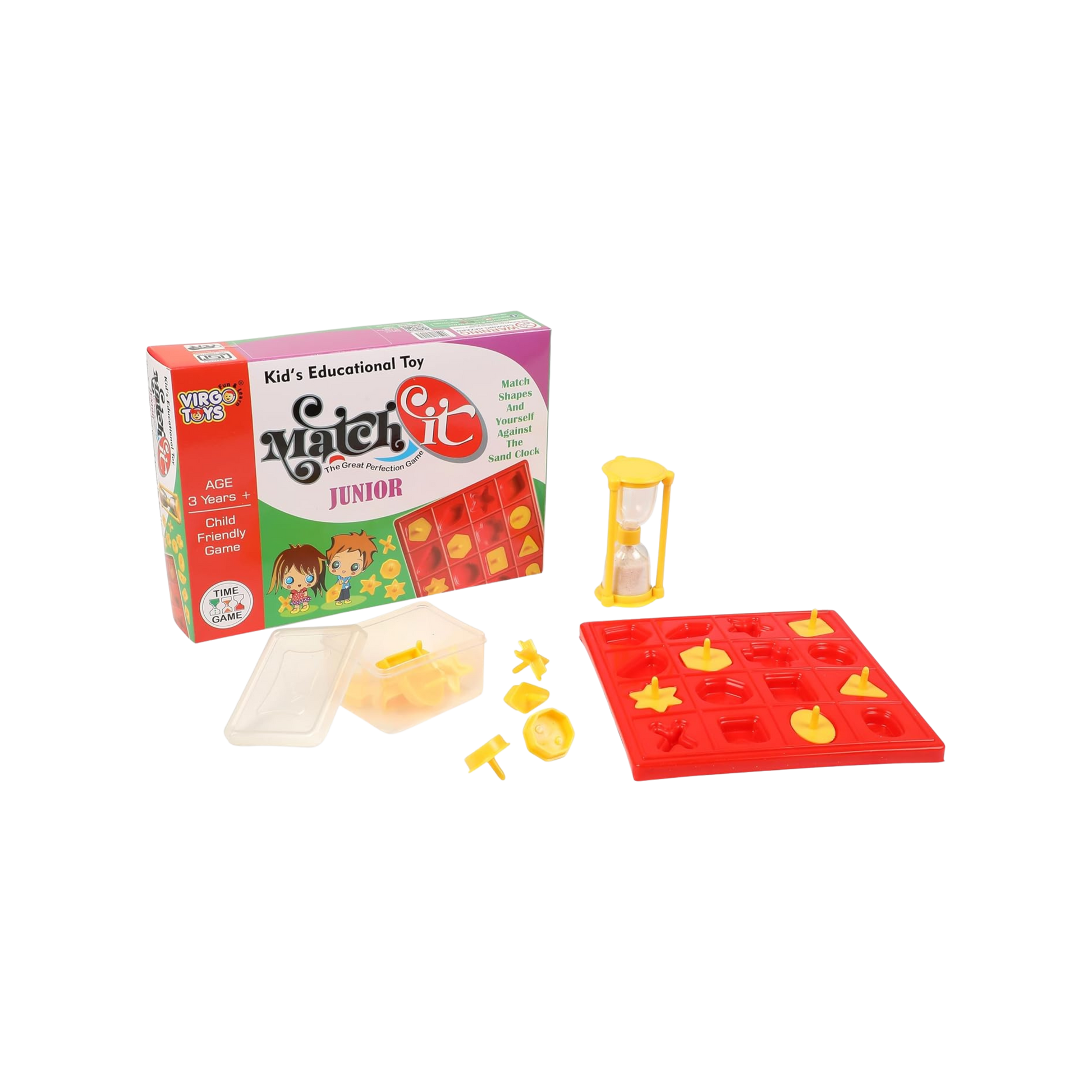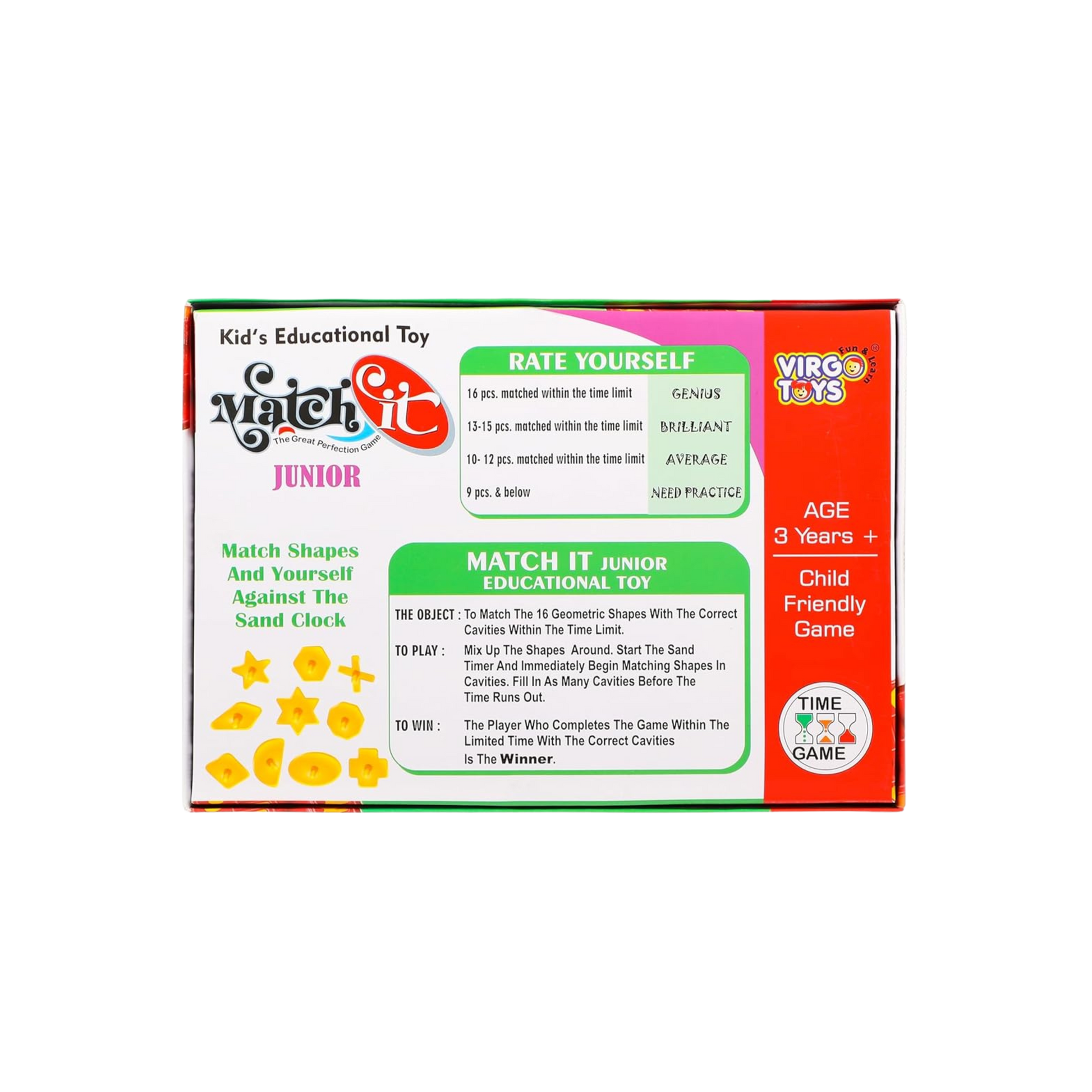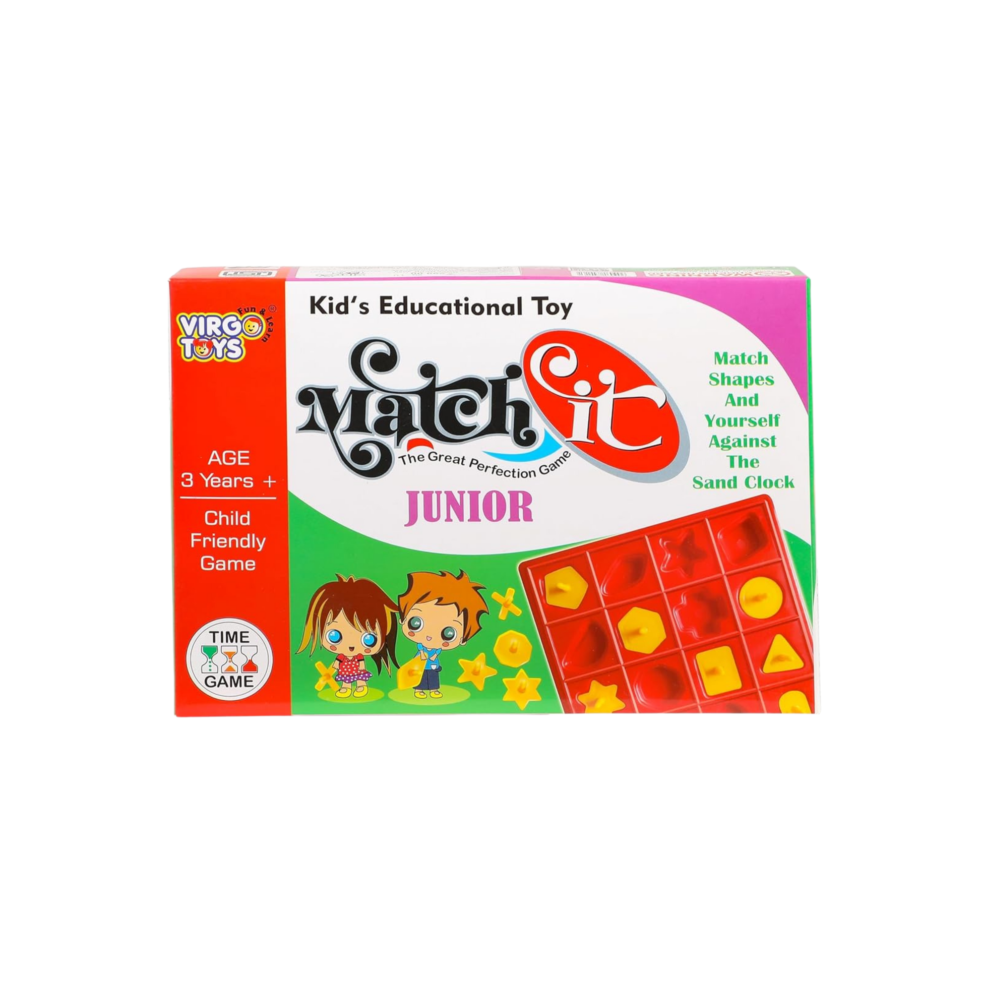 Introduce kids to fast-paced thinking and shape recognition with the playful MATCH IT JUNIOR shape matching game by Virgo Toys. This exciting educational toy challenges children to match geometric shapes to the correct slots on the tray before time runs out with the sand clock. The compact design, bright colors, and easy-to-hold pieces make it perfect for small hands and developing minds. It is specially designed to build problem-solving, fine motor skills, and quick reflexes while keeping children entertained and learning through play