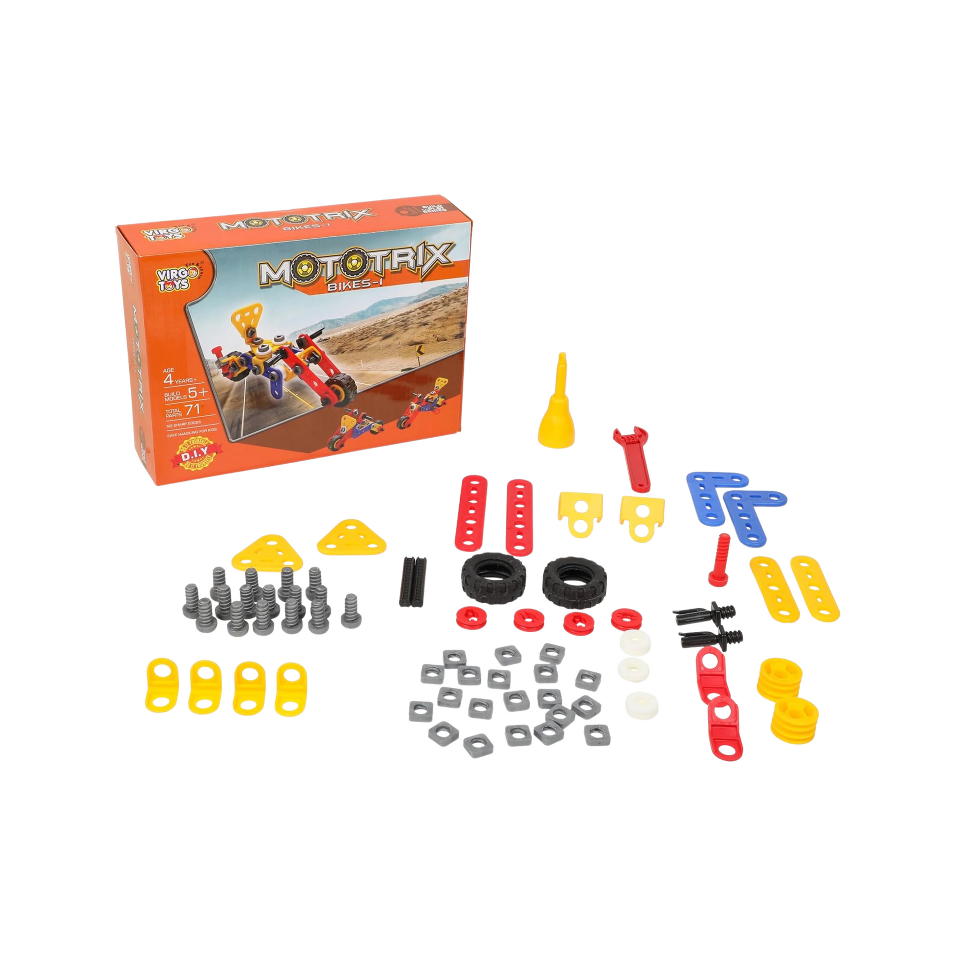 Ignite your child’s creativity and ingenuity with the MOTOTRIX BIKES-1 DIY Construction Set from VIRGO TOYS. This engaging kit is specially crafted for young builders, featuring vibrant components and easy-to-assemble pieces that foster innovation and hands-on learning. Designed for children aged 4 years and above, the set promotes constructive play and skill development, combining fun with educational value. With over 71 safe, colorful parts, kids can create 5 or more unique bike models, learning essential problem-solving and fine motor skills along the way. With smooth edges and premium materials, every build is both safe and stimulating. Give the gift of discovery and hours of creative play with MOTOTRIX—where every child’s idea can take shape!