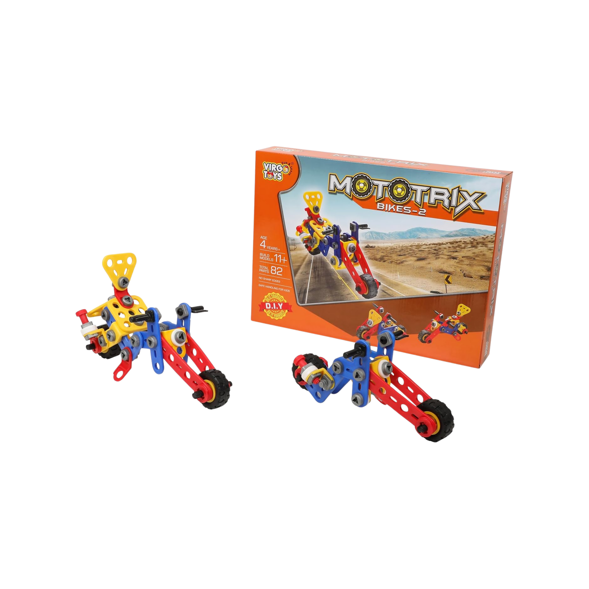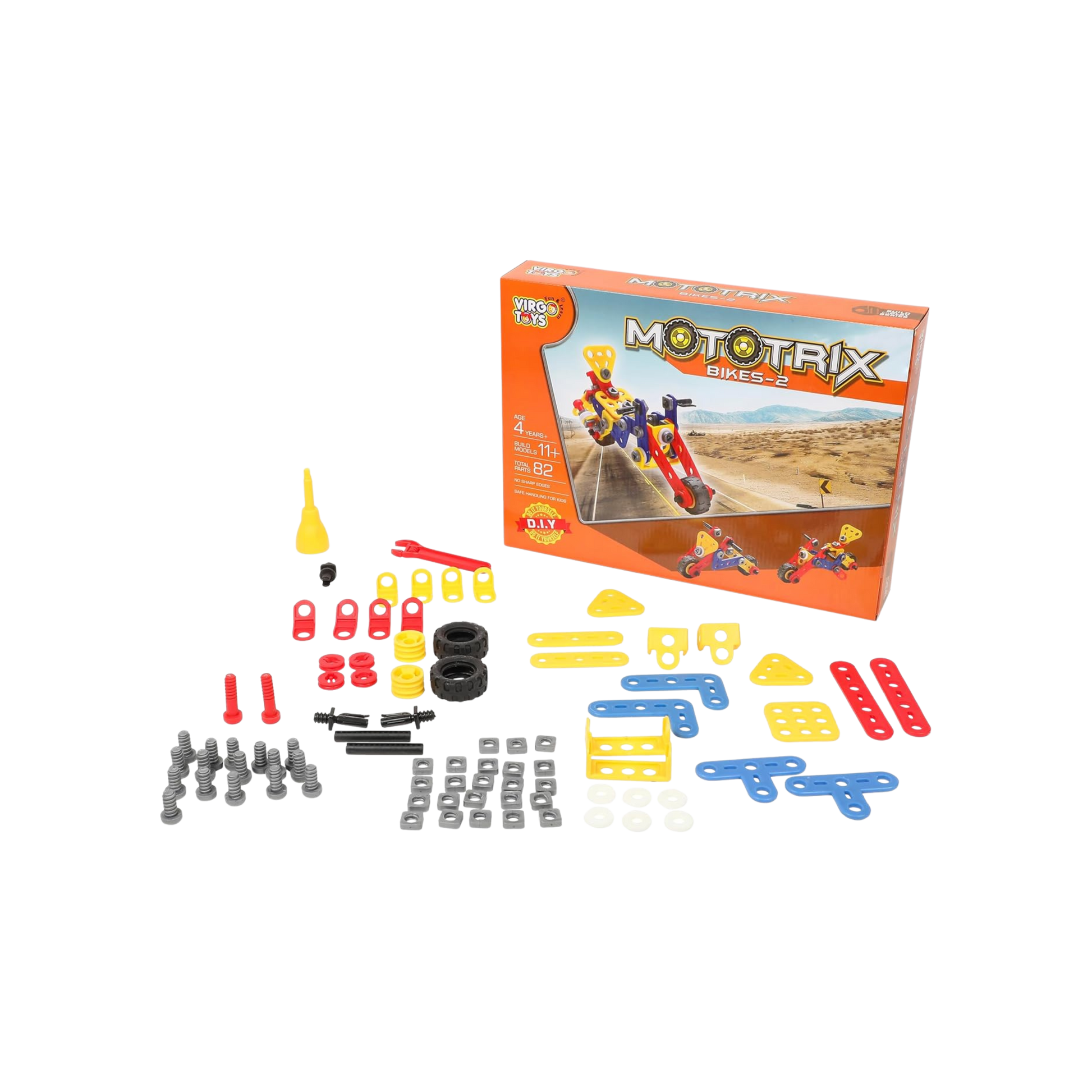 Unleash your child’s creativity and engineering skills with the vibrant and exciting MOTOTRIX BIKES-2 DIY Construction Set by VIRGO TOYS. This thoughtfully designed kit is perfect for curious young minds, offering an incredible hands-on building experience that is both challenging and fun. Featuring over 82 durable parts, this set empowers children to construct 11 or more unique bike models using imagination and fine motor skills. Each piece is crafted with rounded edges for safe handling, making it ideal for kids aged 4 and above. The set includes brightly colored pieces, wheels, and essential building tools, stimulating not only creativity but also logical thinking and problem-solving abilities. Discover hours of safe, addictive play while children build, disassemble, and reimagine new creations. Trust MOTOTRIX—where every build turns into an adventure!
