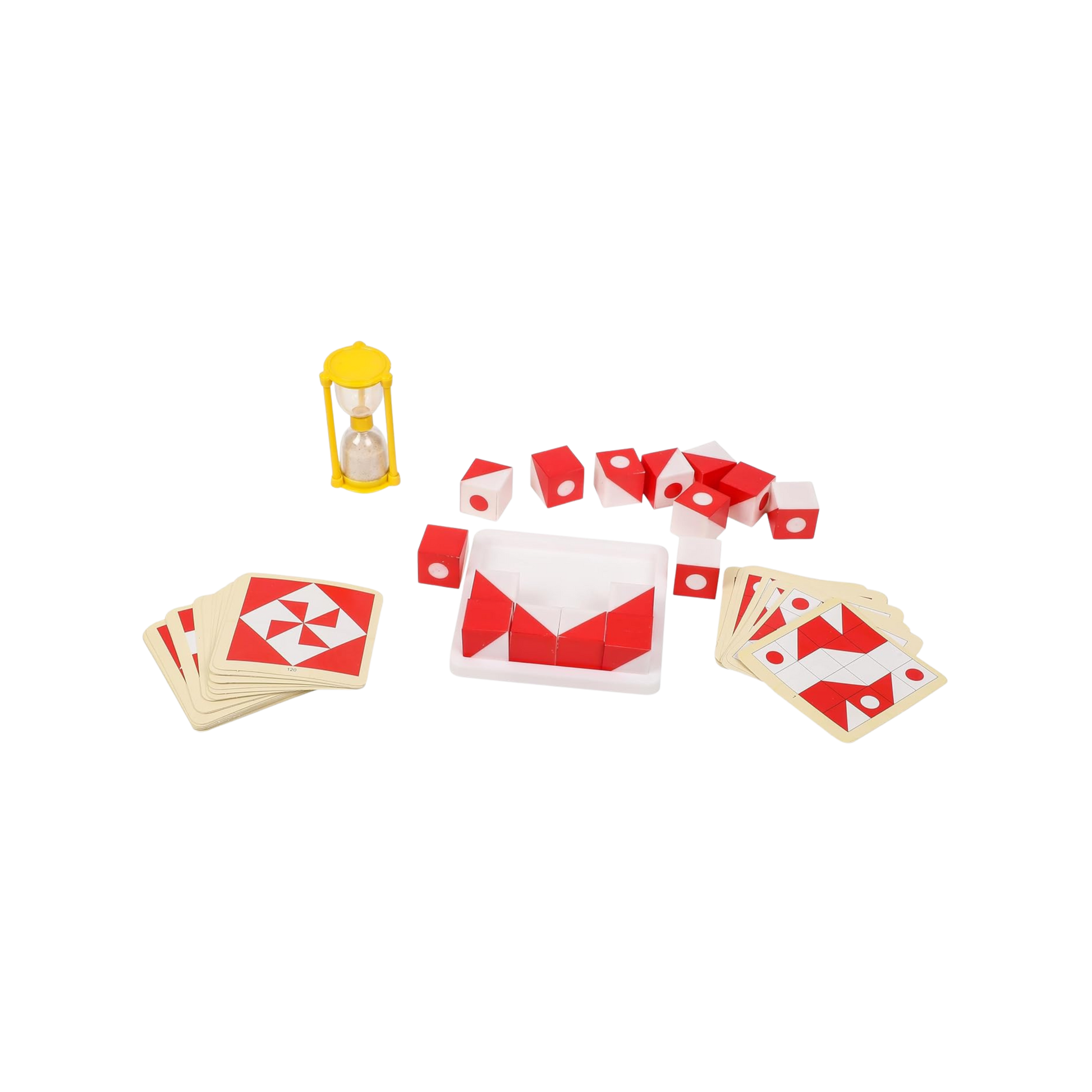 - Game Components: 1 set of 16 cubes, 1 tray (11.5 cm x 11.5 cm), 40 double-sided challenge cards (120 challenges), 1 sand timer, 1 rule sheet.