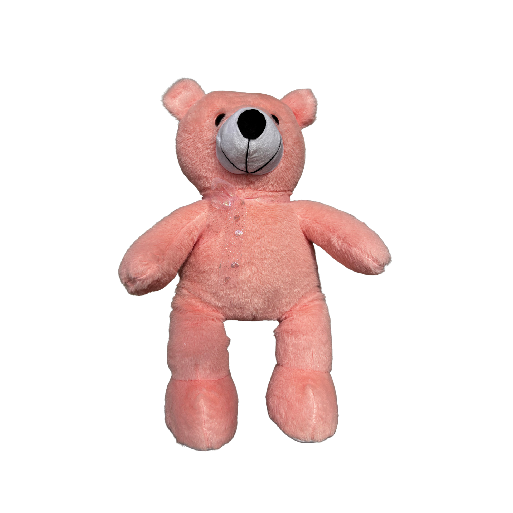 - Classic Teddy Bear Look: Peach pink plush, embroidered nose and smile